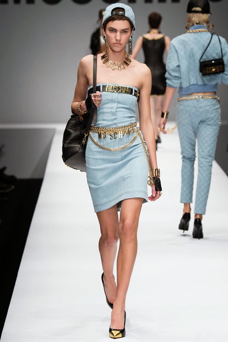 Jeremy Scott's first season at Moschino proved to be an eye catching show, bringing fast food to getto fabulous. Known to mix culture with fashion, Scott took inspiration from multi-national fast food chain McDonalds, and put it on the runway, using the iconic red and yellow colour in 'Chanel' looking suits, with happy meal purses. Jaw dropping and drooling!